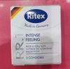 • Bao cao su RITEX được làm từ mủ cao su tự nhiên, trong suốt, bề mặt trơn mịn, hình trụ, có núm, chất bôi trơn dimeticon